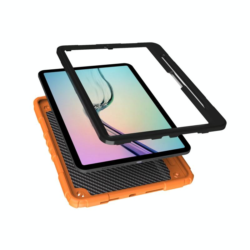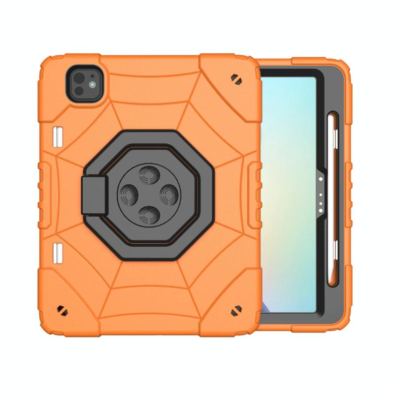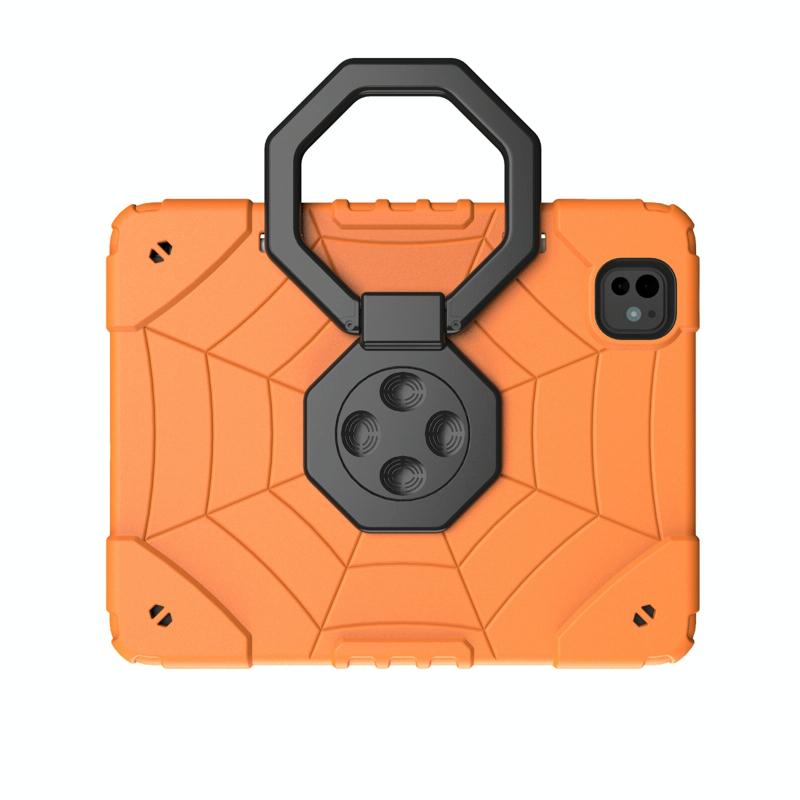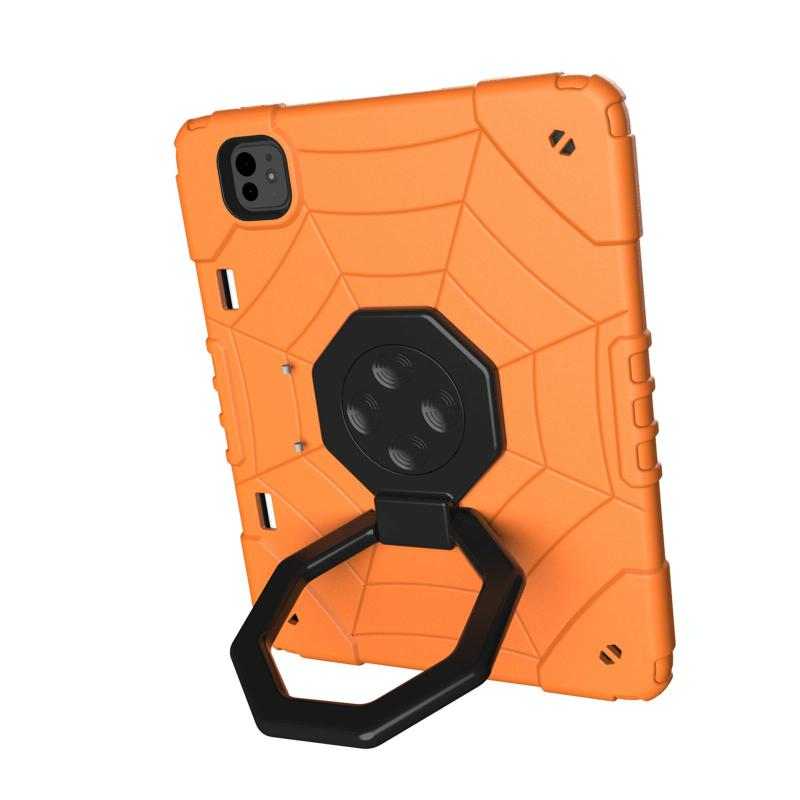 For iPad Pro 11 2024 Spider Turntable Handle Stress Relief Tablet Case(Orange Black)