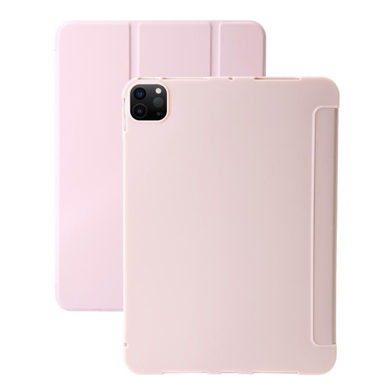 For iPad Pro 11 2024 Three-fold Holder Flip Tablet Leather Case(Light Pink)