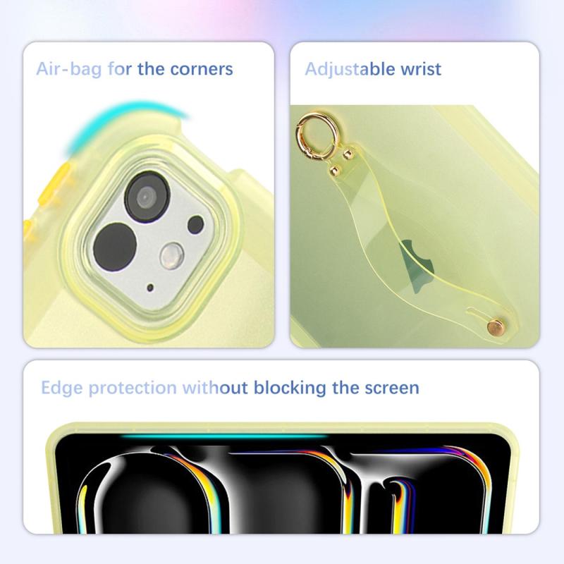 For iPad Pro 11 2024 Wristband Holder PC Hybrid TPU Soft Tablet Case(Yellow)