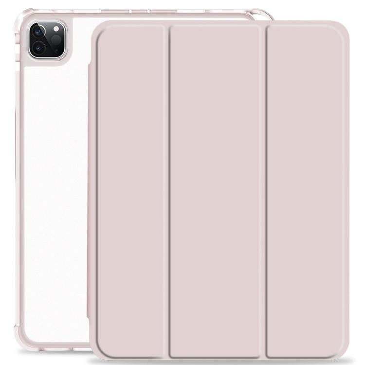 For iPad Pro 12.9 2022 / 2021 / 2020 3-fold Shockproof Smart Leather Tablet Case(Pink)