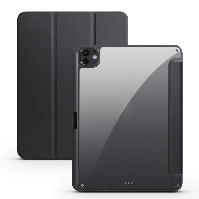 For iPad Pro 13 2024 Acrylic 3-folding Smart Leather Tablet Case(Black)