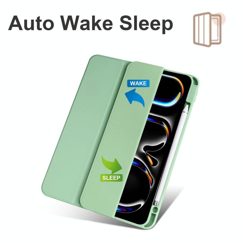 For iPad Pro 13 2024 Acrylic 3-folding Smart Leather Tablet Case(Green)