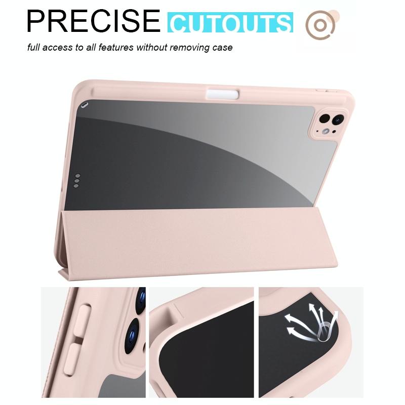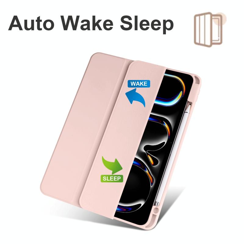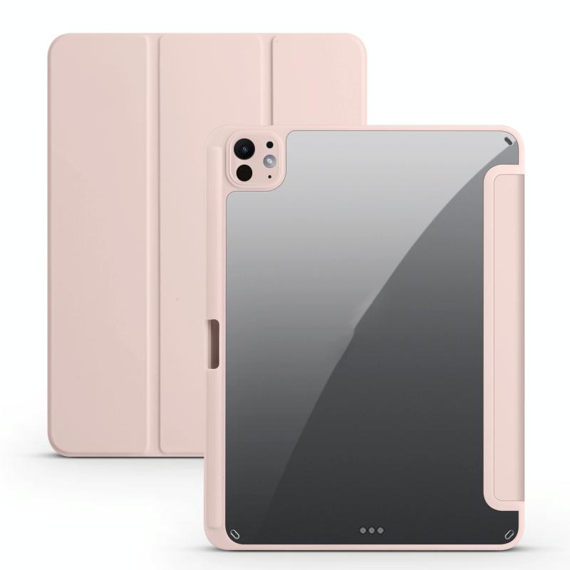 For iPad Pro 13 2024 Acrylic 3-folding Smart Leather Tablet Case(Pink)