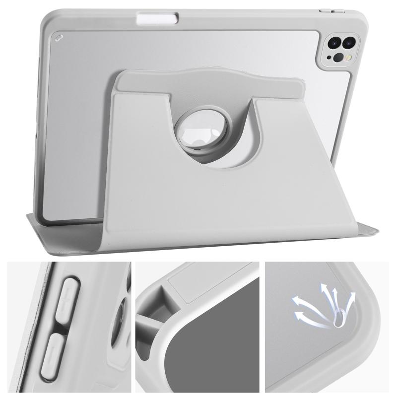 For iPad Pro 13 2024 Acrylic 360 Degree Rotation Holder Leather Tablet Case(Fog Grey)