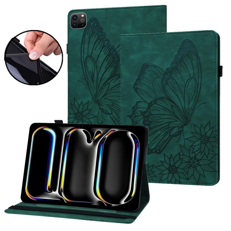 For iPad Pro 13 2024 Big Butterfly Embossed Leather Tablet Case(Green)