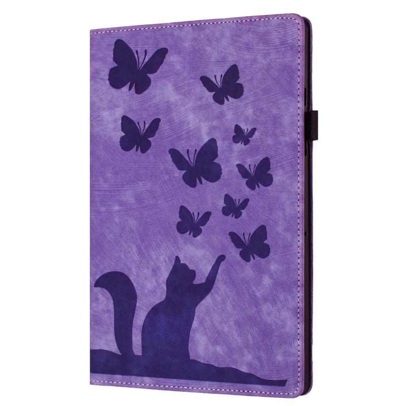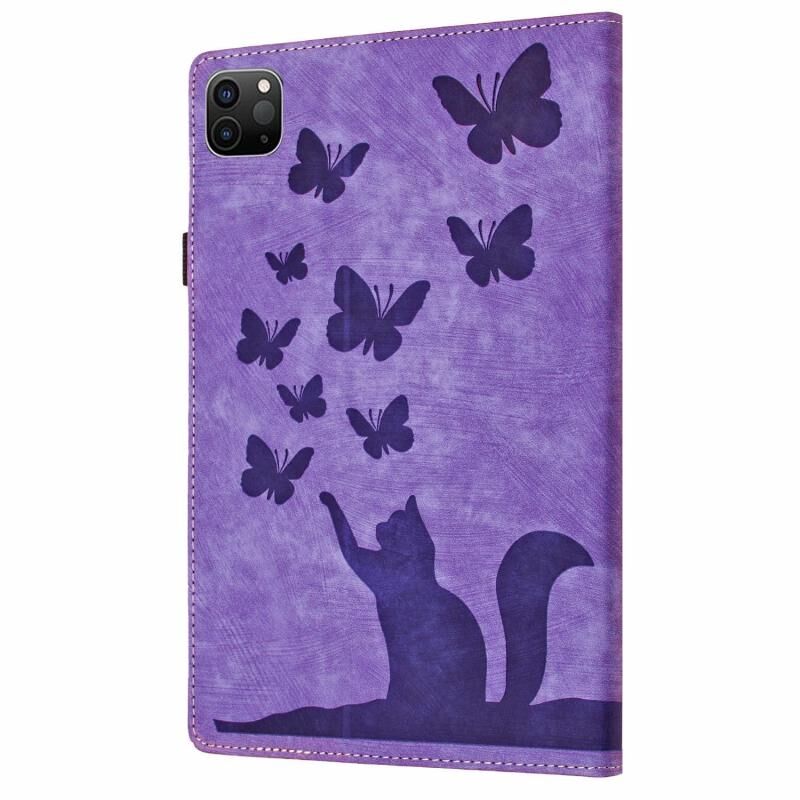For iPad Pro 13 2024 Butterfly Cat Embossing Leather Tablet Case(Purple)