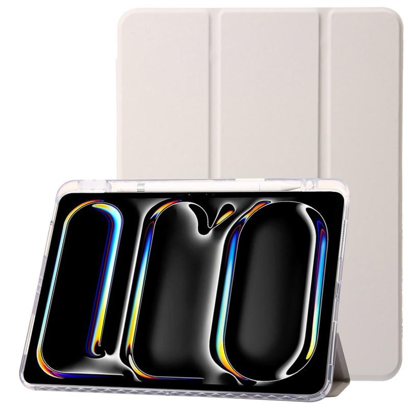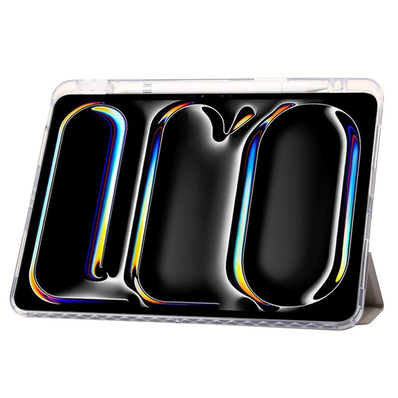 For iPad Pro 13 2024 Clear Acrylic 3-Fold Leather Tablet Case(Grey)