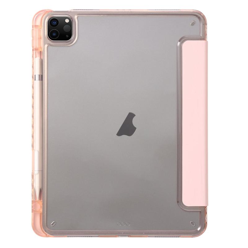 For iPad Pro 13 2024 Clear Acrylic 3-Fold Leather Tablet Case(Pink)