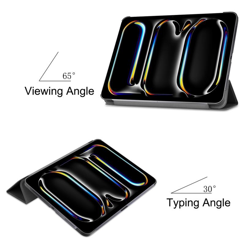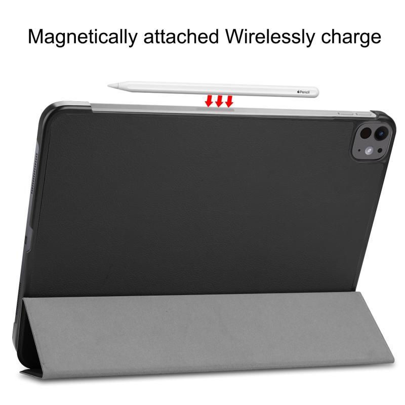 For iPad Pro 13 2024 Custer Pure Color 3-Fold Holder Smart Leather Tablet Case(Black)