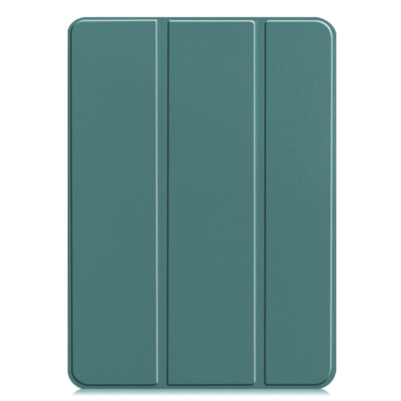 For iPad Pro 13 2024 Custer Pure Color 3-Fold Holder Smart Leather Tablet Case(Dark Green)