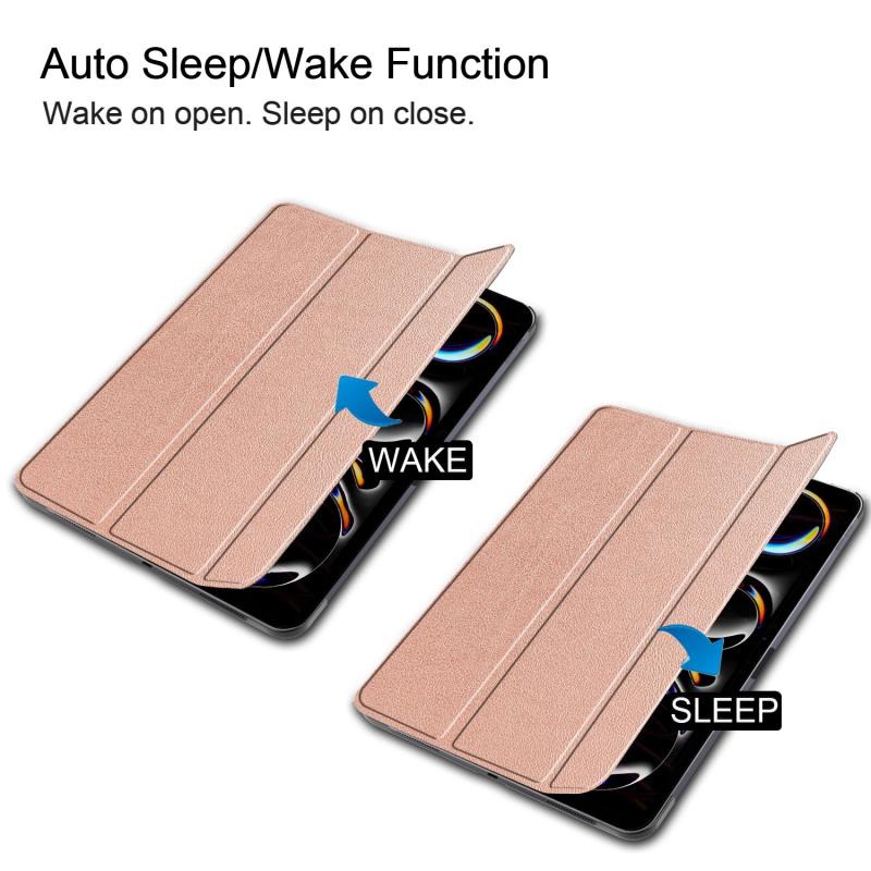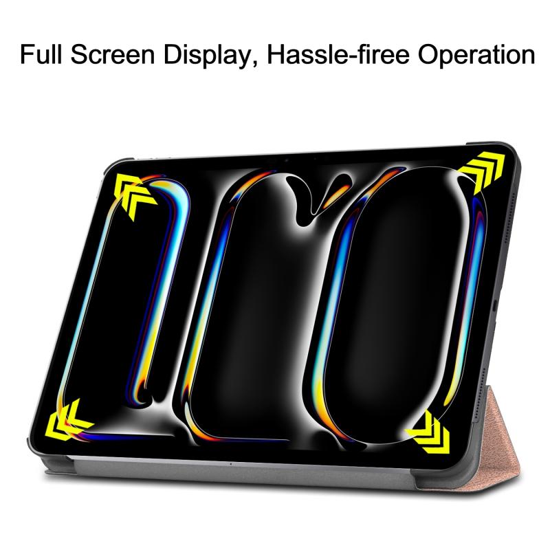 For iPad Pro 13 2024 Custer Pure Color 3-Fold Holder Smart Leather Tablet Case(Rose Gold)