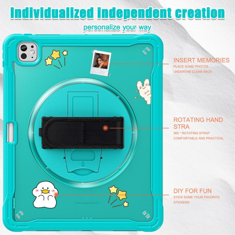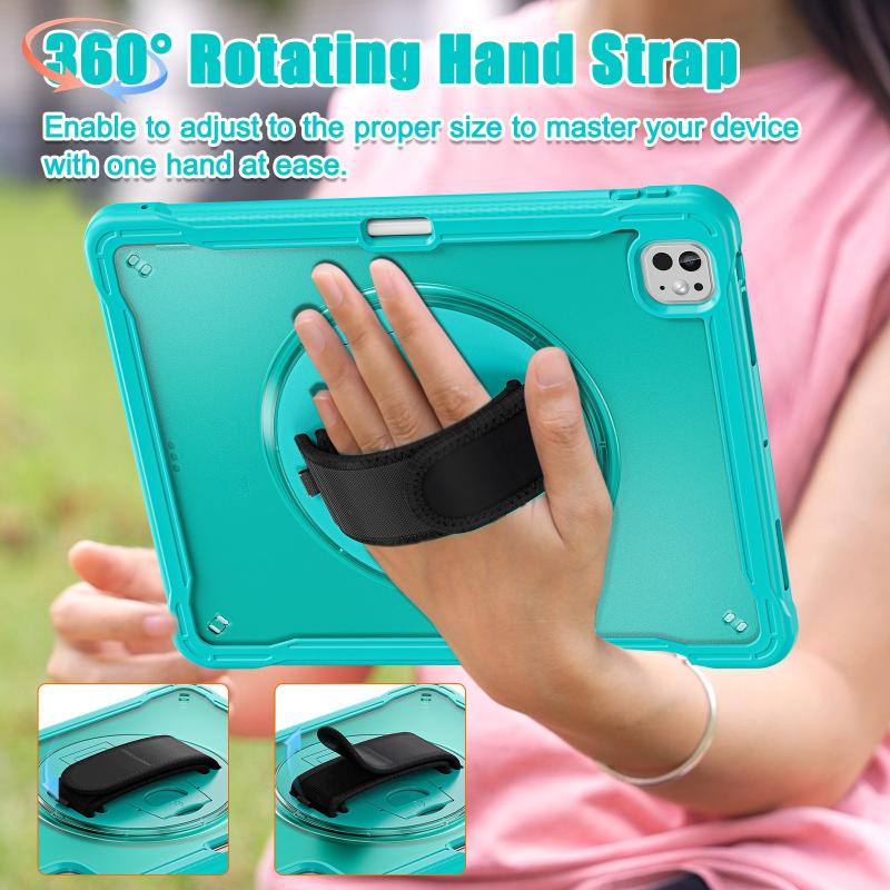 For iPad Pro 13 2024 Heavy Duty Hybrid Tablet Case with Hand Grip & Strap(Light Blue)