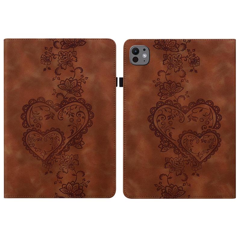 For iPad Pro 13 2024 Love Hearts Embossed Leather Smart Tablet Case(Brown)