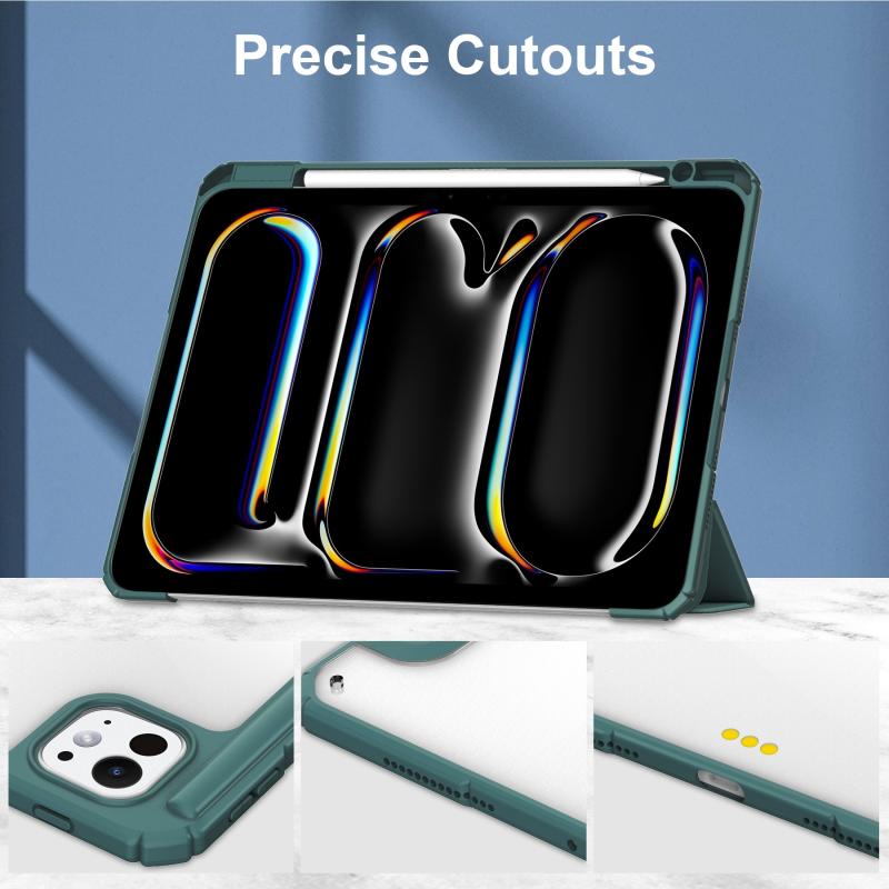 For iPad Pro 13 2024 Pure Color 3-fold Clear TPU Smart Leather Tablet Case(Dark Green)