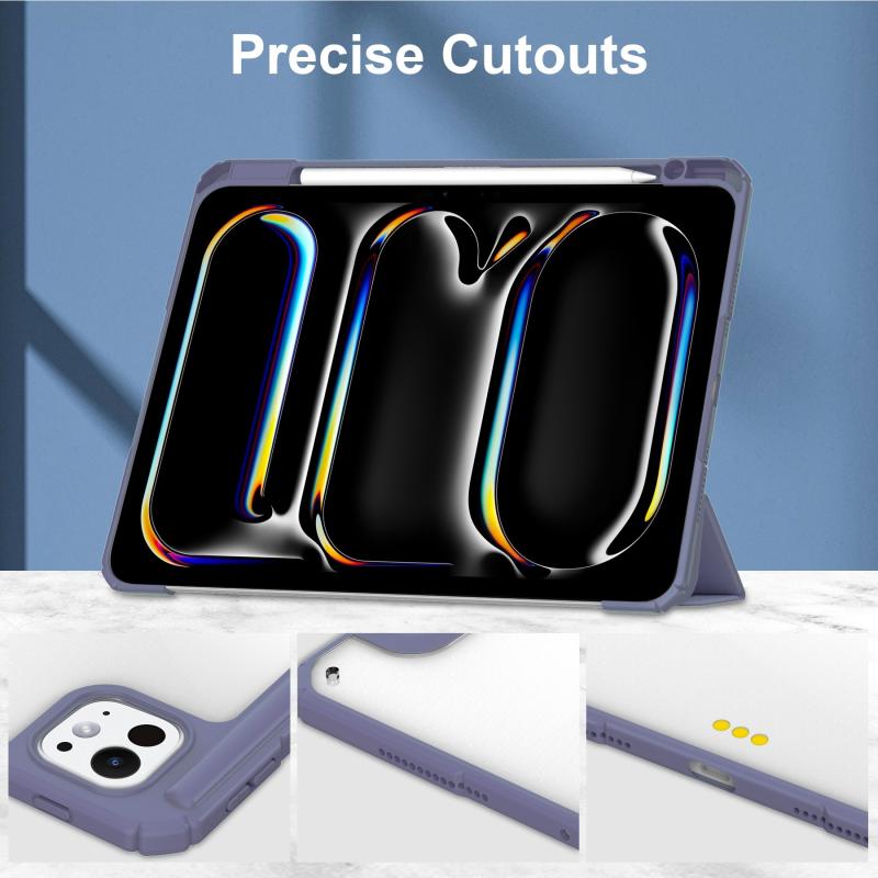 For iPad Pro 13 2024 Pure Color 3-fold Clear TPU Smart Leather Tablet Case(Lavender)