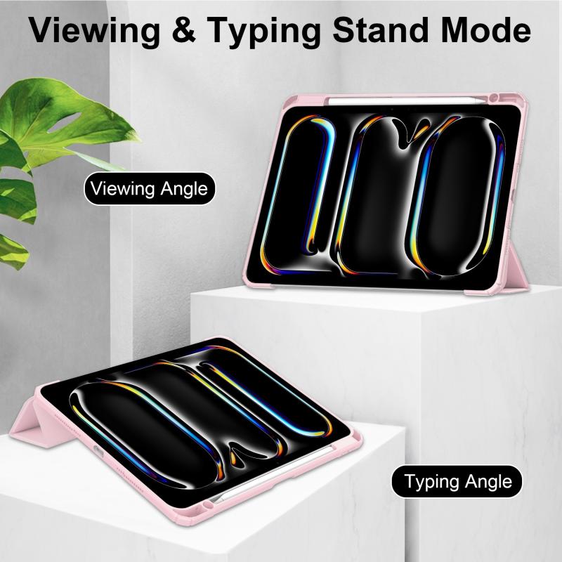 For iPad Pro 13 2024 Pure Color 3-fold Clear TPU Smart Leather Tablet Case(Pink)
