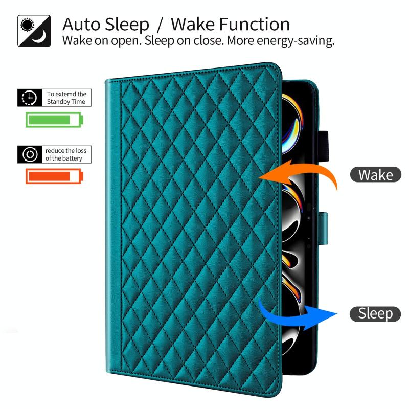 For iPad Pro 13 2024 Rhombus Lattice Leather Smart Tablet Case(Dark Green)