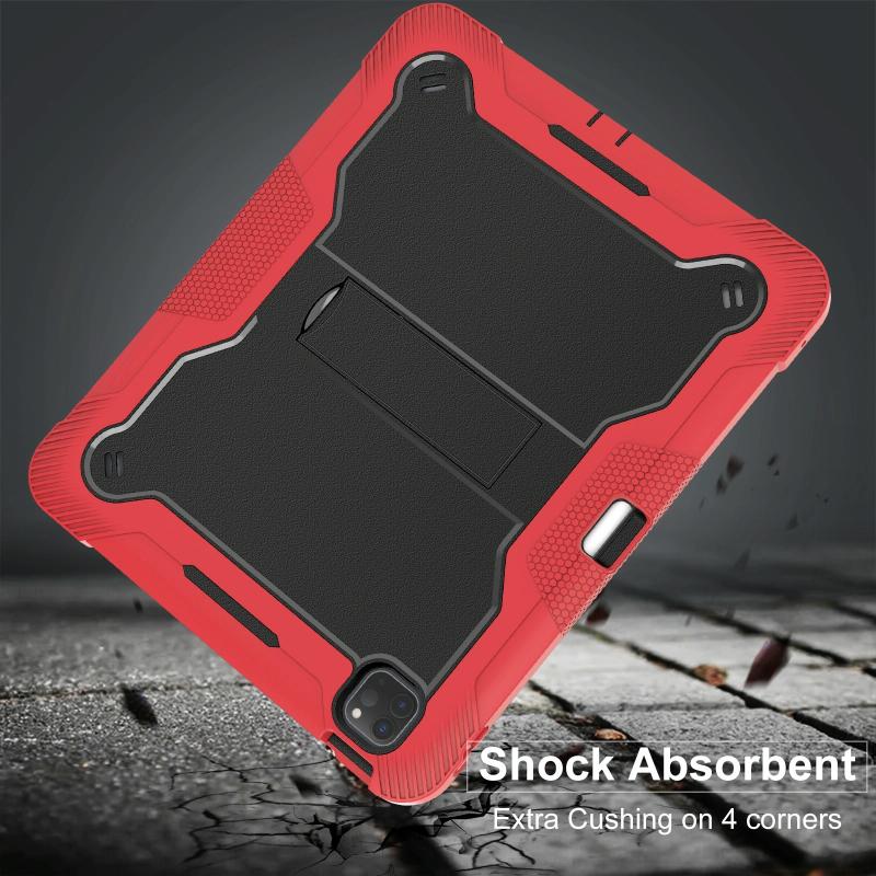 For iPad Pro 13 2024 Shockproof Silicone Hybrid PC Tablet Case with Holder(Black + Red)