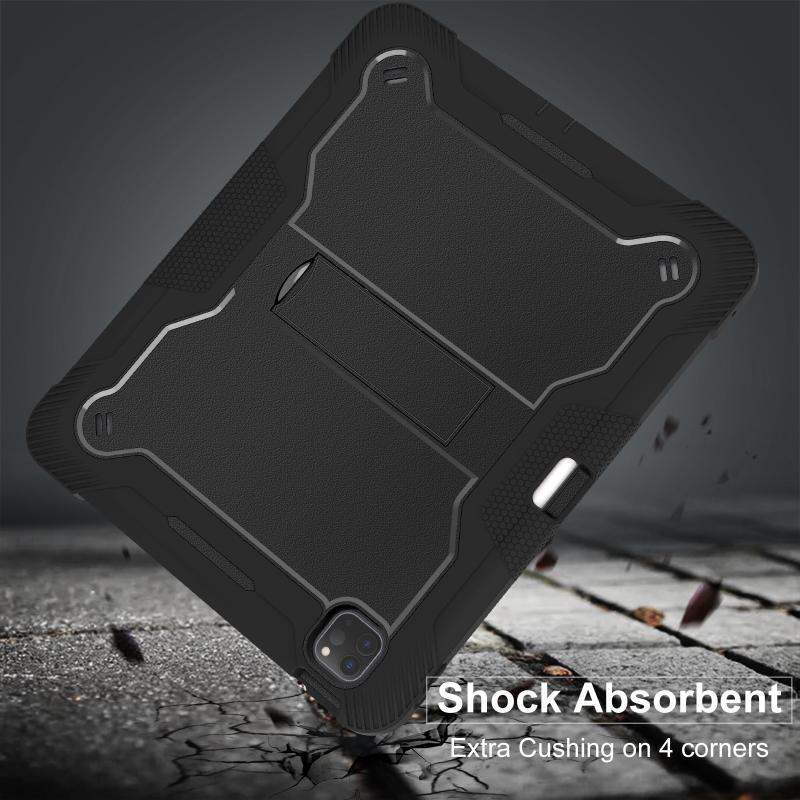 For iPad Pro 13 2024 Shockproof Silicone Hybrid PC Tablet Case with Holder(Black)