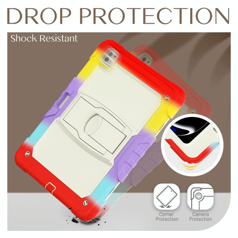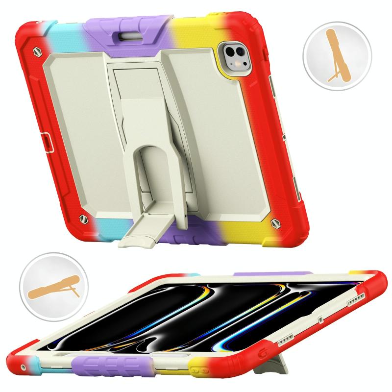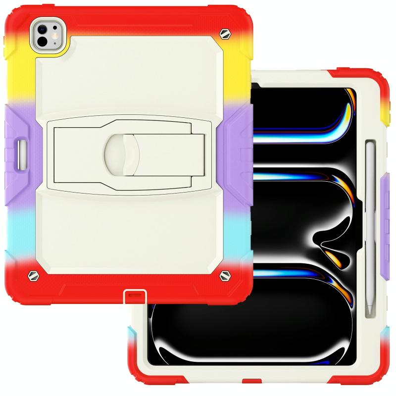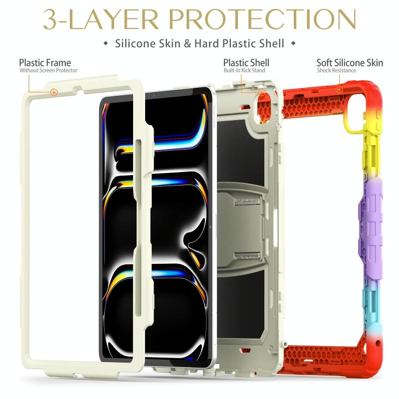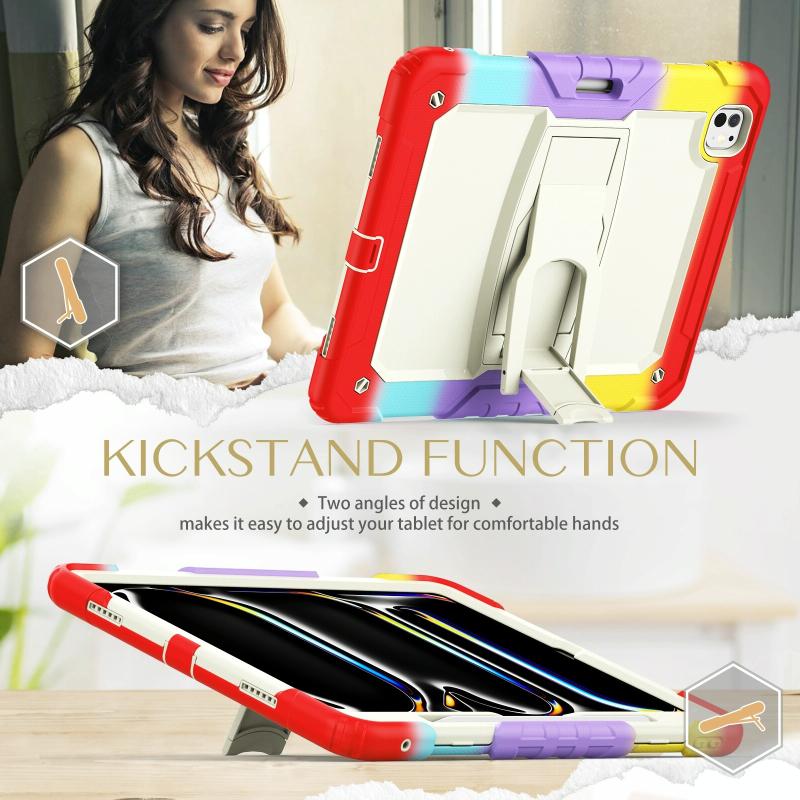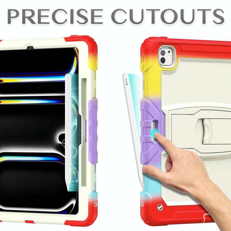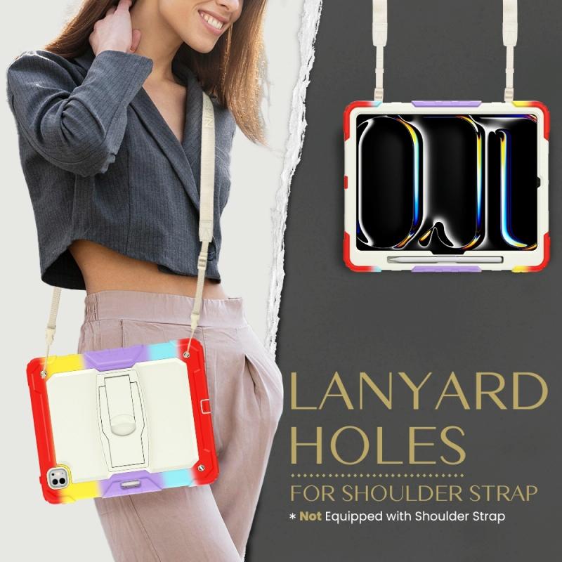 For iPad Pro 13 2024 Silicone Hydric PC Tablet Case with Shoulder Strap & Holder(Camouflage Red)