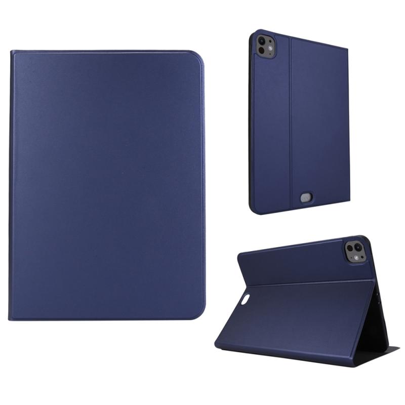 For iPad Pro 13 2024 Stretch Voltage Plain Leather Smart Tablet Case(Dark Blue)