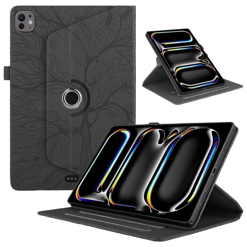 For iPad Pro 13 2024 Tree Life Embossed Rotation Leather Smart Tablet Case(Black)