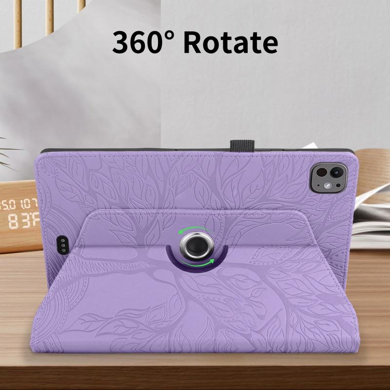 For iPad Pro 13 2024 Tree Life Embossed Rotation Leather Smart Tablet Case(Purple)