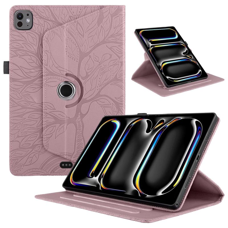 For iPad Pro 13 2024 Tree Life Embossed Rotation Leather Smart Tablet Case(Rose Gold)