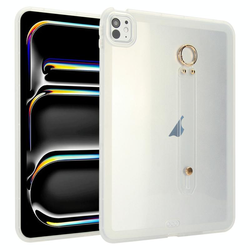 For iPad Pro 13 2024 Wristband Holder PC Hybrid TPU Soft Tablet Case(Transparent)