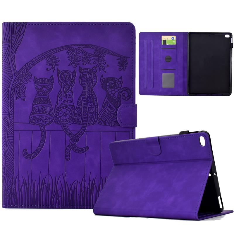 For iPad Pro 9.7 / 9.7 2018 / 2017 Cats Embossed Leather Smart Tablet Case(Purple)