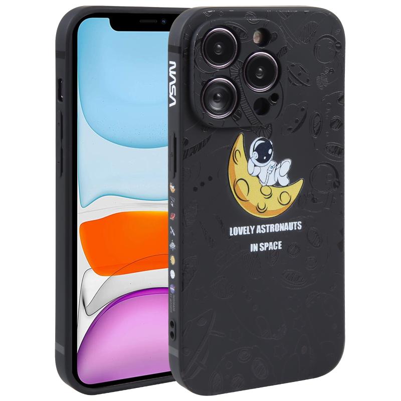 For iPhone 11 Astronaut Pattern Silicone Straight Edge Phone Case(Lovely Astronaut-Black)