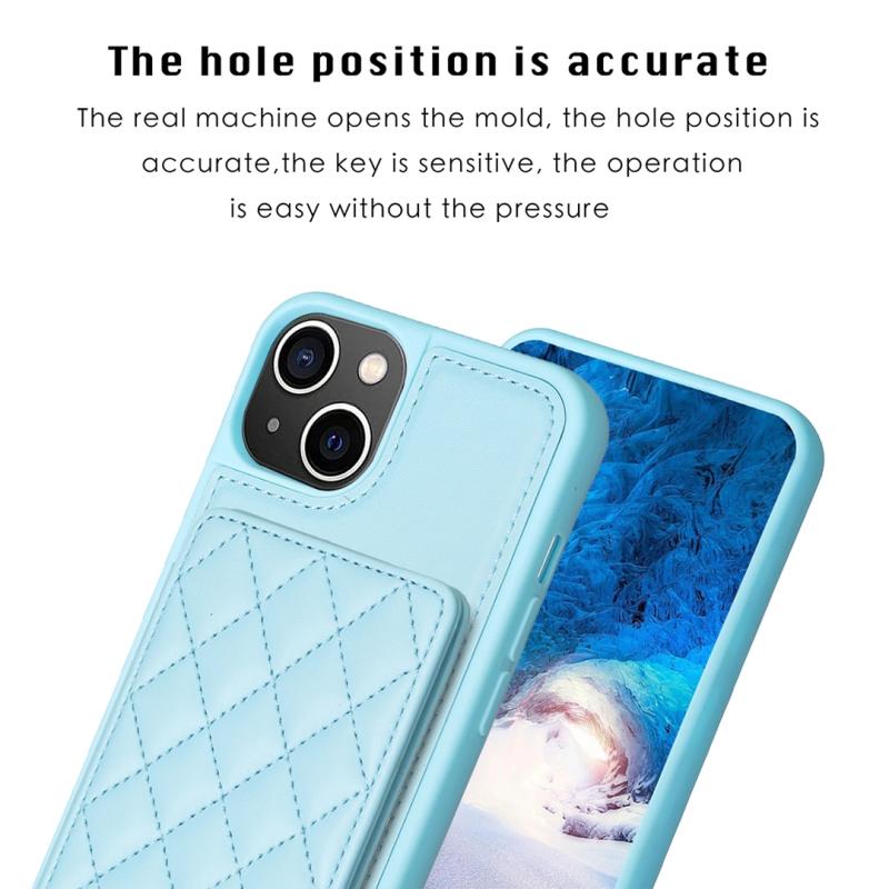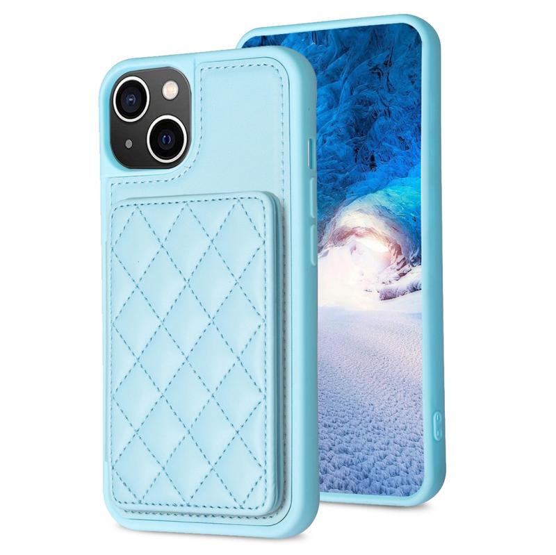 For iPhone 11 BF25 Square Plaid Card Bag Holder Phone Case(Blue)