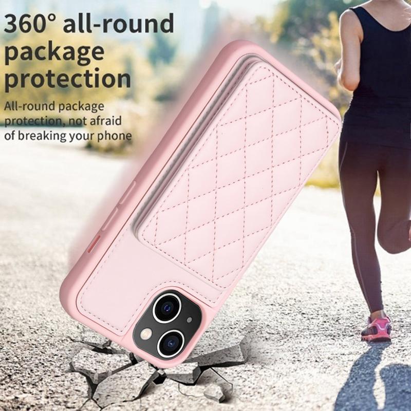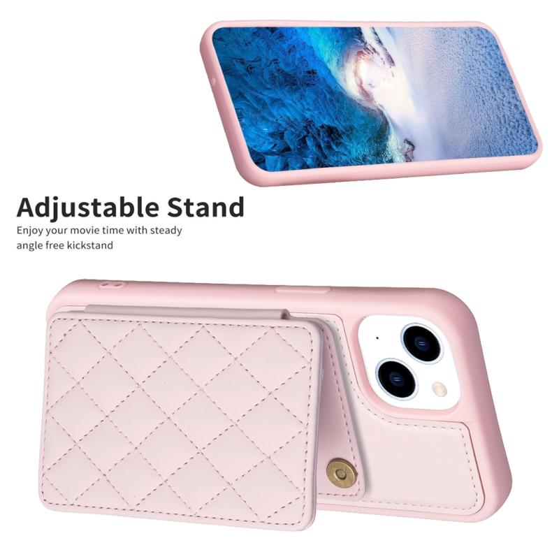 For iPhone 11 BF25 Square Plaid Card Bag Holder Phone Case(Pink)