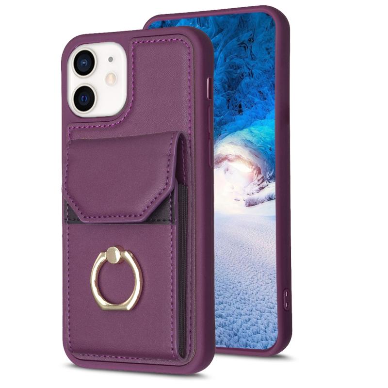 For iPhone 11 BF29 Organ Card Bag Ring Holder Phone Case(Dark Purple)