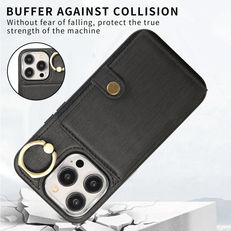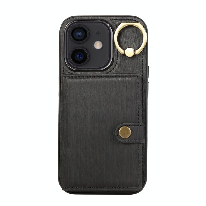 For iPhone 11 Brushed Texture Wallet Ring Holder Phone Case(Black)