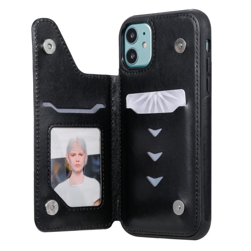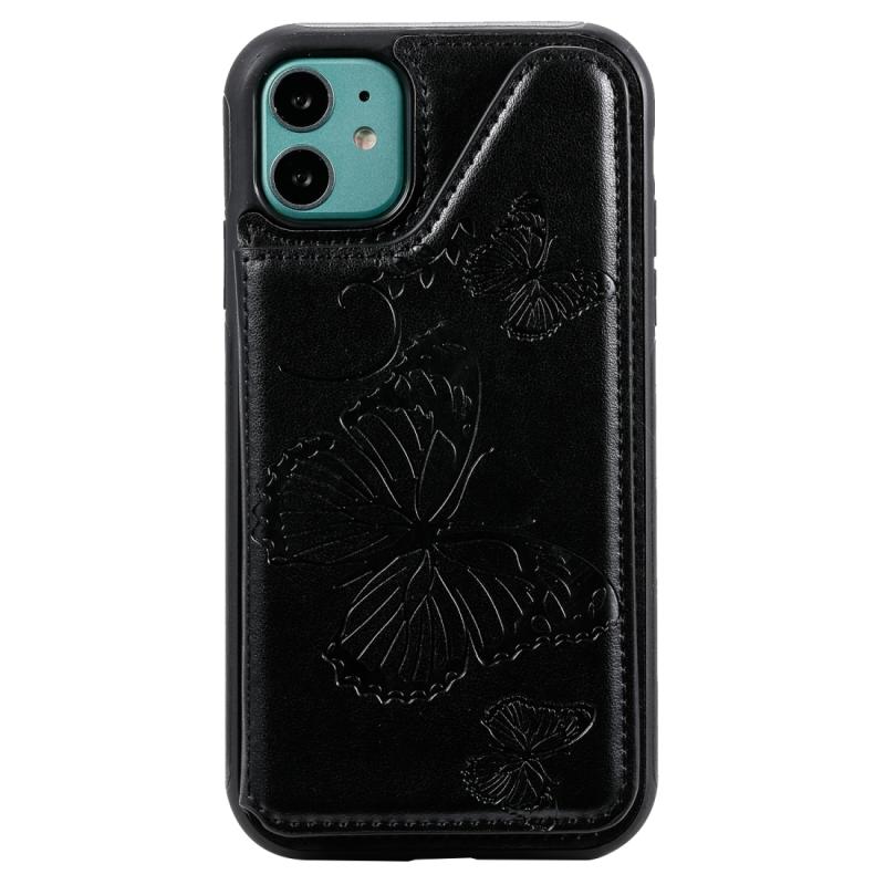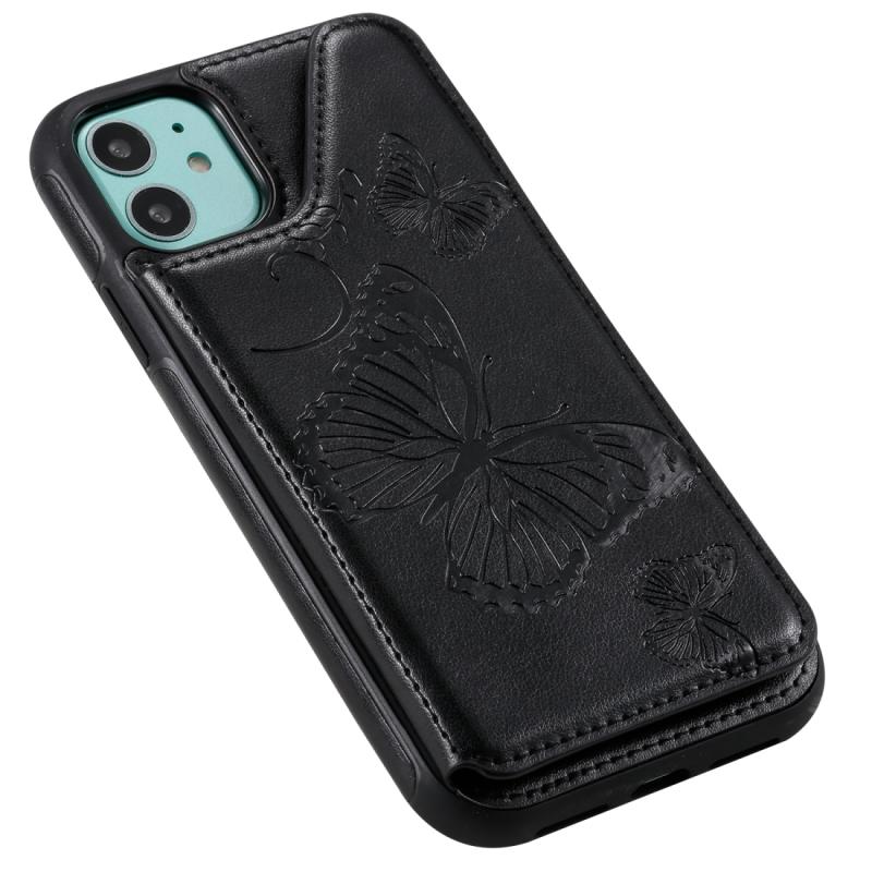 For iPhone 11 Butterfly Embossing Pattern Shockproof Protective Case with Holder & Card Slots & Photo Frame(Black)