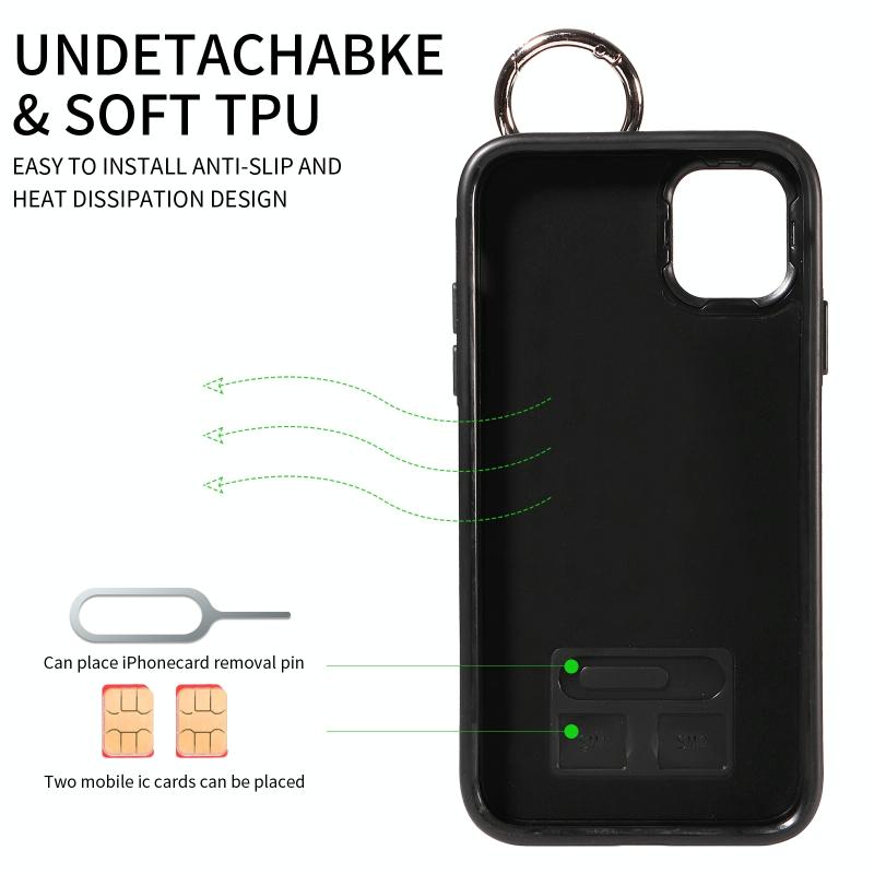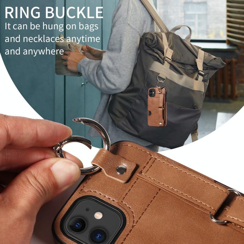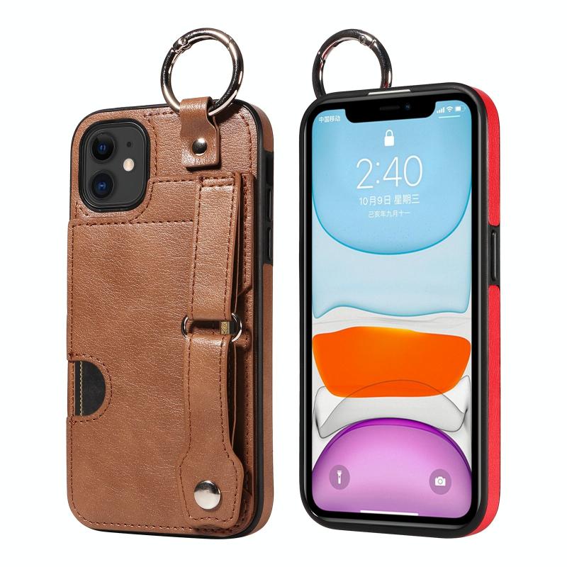 For iPhone 11 Calf Texture Wrist Card Slot Ring Phone Case(Brown)