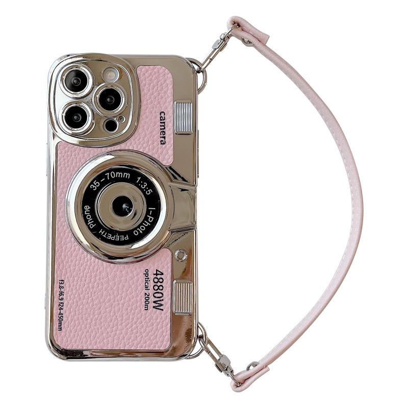 2. Electroplated retro camera style with hand strap.
