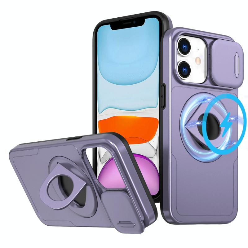 For iPhone 11 Camshield MagSafe Ring Holder Armor Phone Case(Purple)