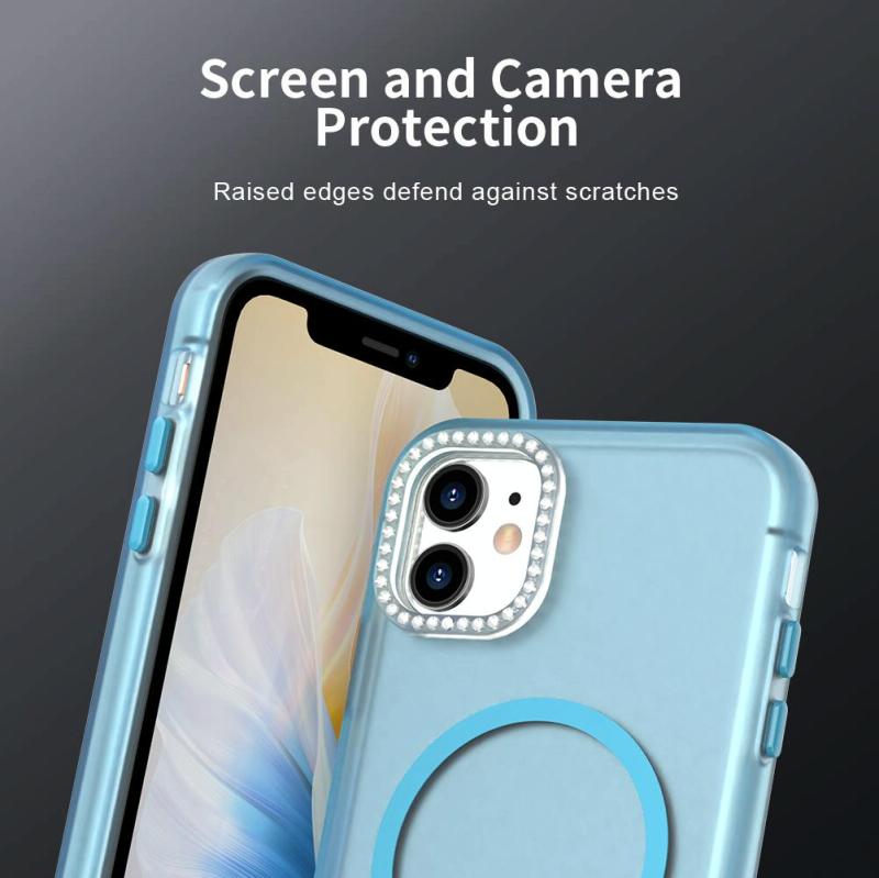 For iPhone 11 Candy Diamond Magsafe Frosted PC Hybrid TPU Phone Case(Blue)