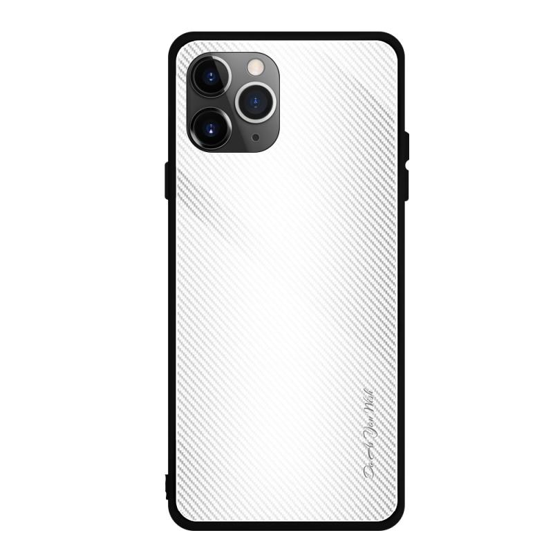 For iPhone 11 Carbon Fiber Texture Gradient Color Glass Case(White)