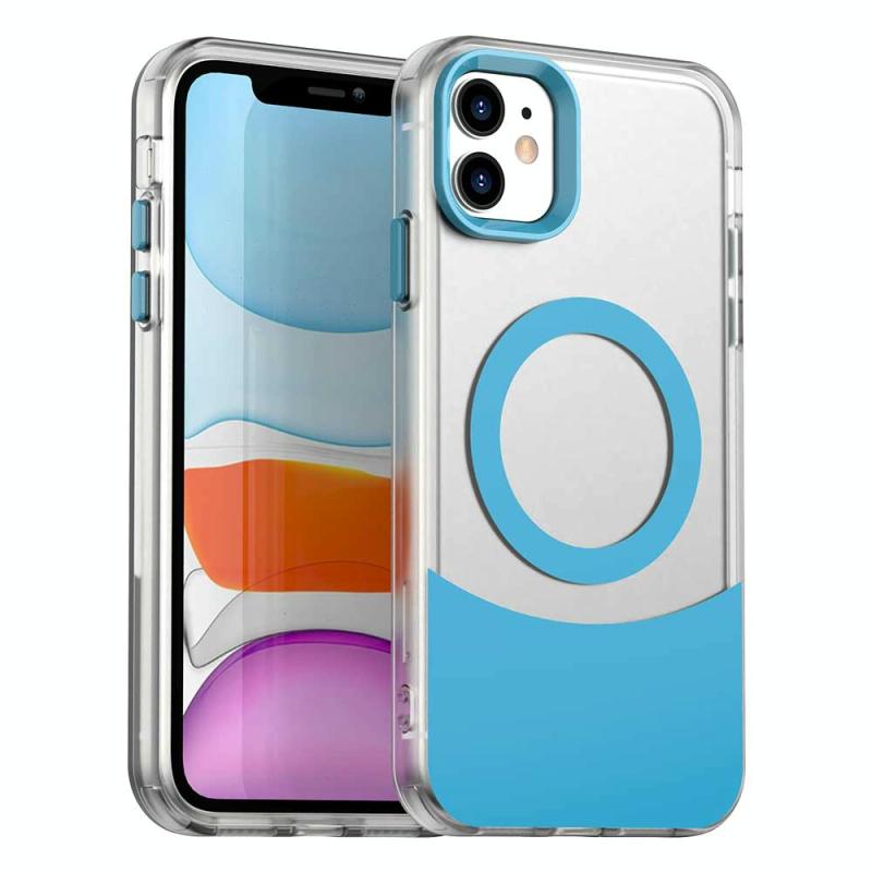 For iPhone 11 Color Blocking Series MagSafe Magnetic PC Hybrid TPU Phone Case(Blue)