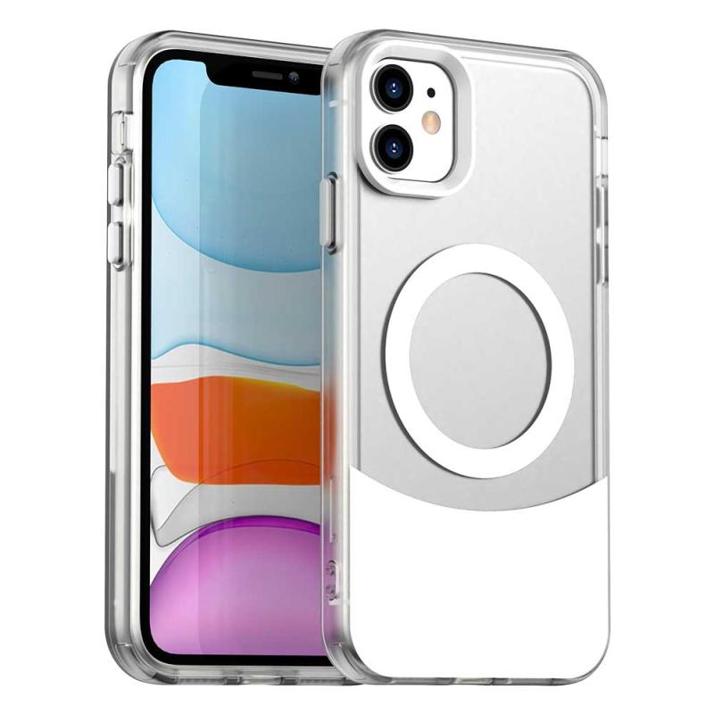 For iPhone 11 Color Blocking Series MagSafe Magnetic PC Hybrid TPU Phone Case(White)