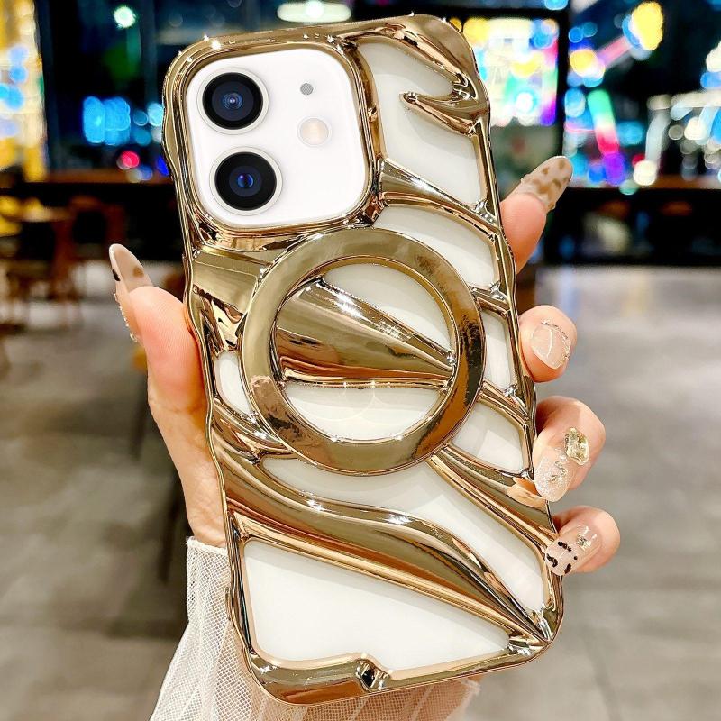 For iPhone 11 Cooling Hollow Electroplating TPU MagSafe Phone Case(Gold)