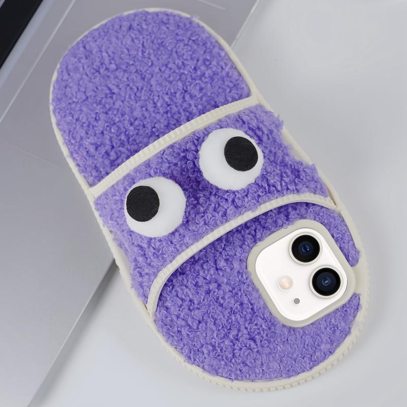 For iPhone 11 Creative Plush Big Eyes Slipper Design TPU Phone Case(Light Purple)