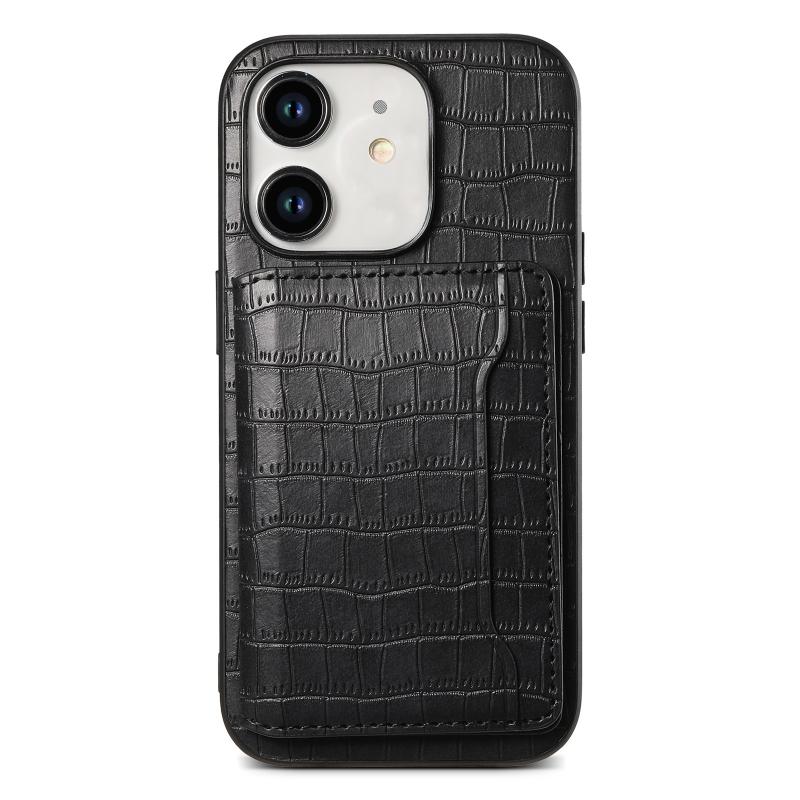 For iPhone 11 Crocodile Texture Card Bag Design Full Coverage Phone Case(Black)