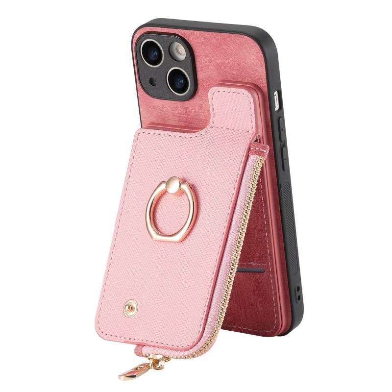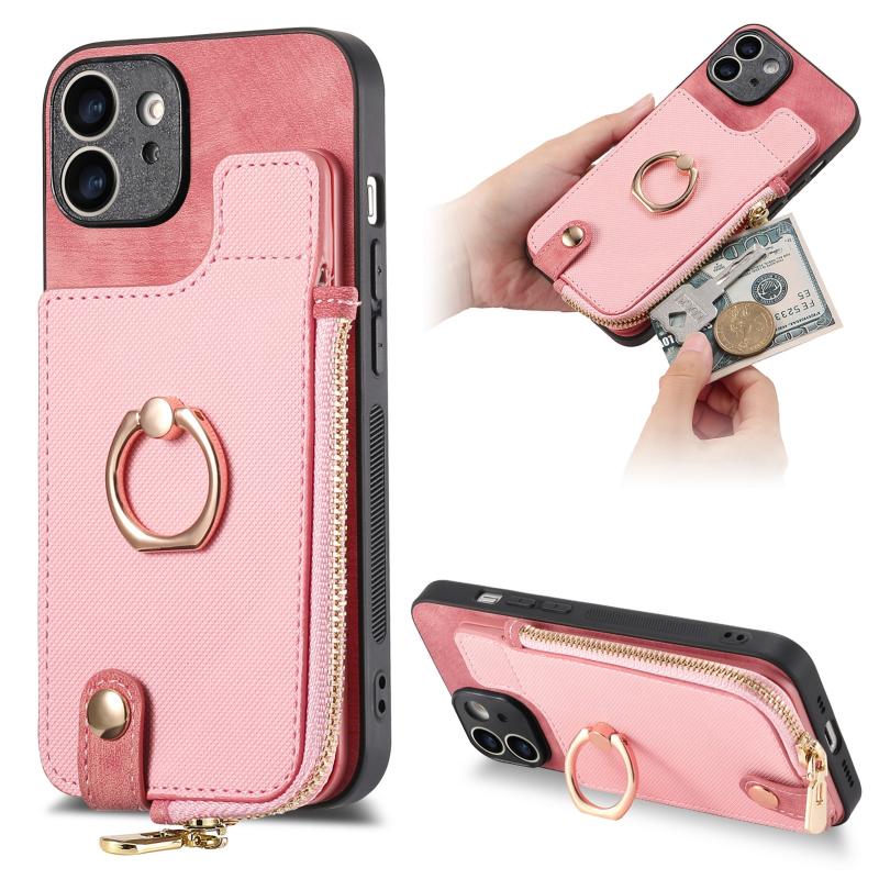 For iPhone 11 Cross Leather Ring Vertical Zipper Wallet Back Phone Case(Pink)