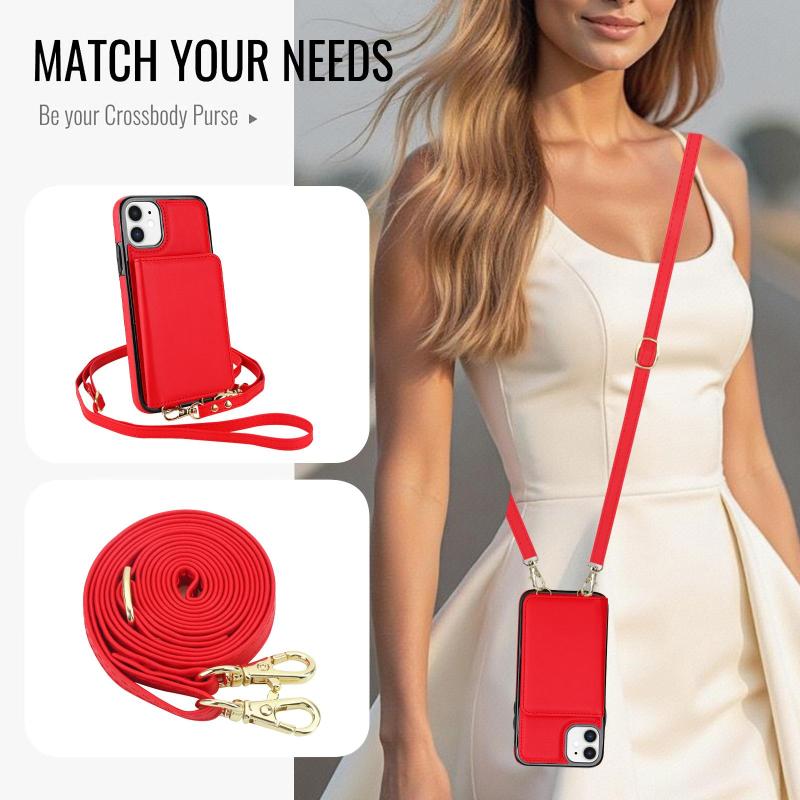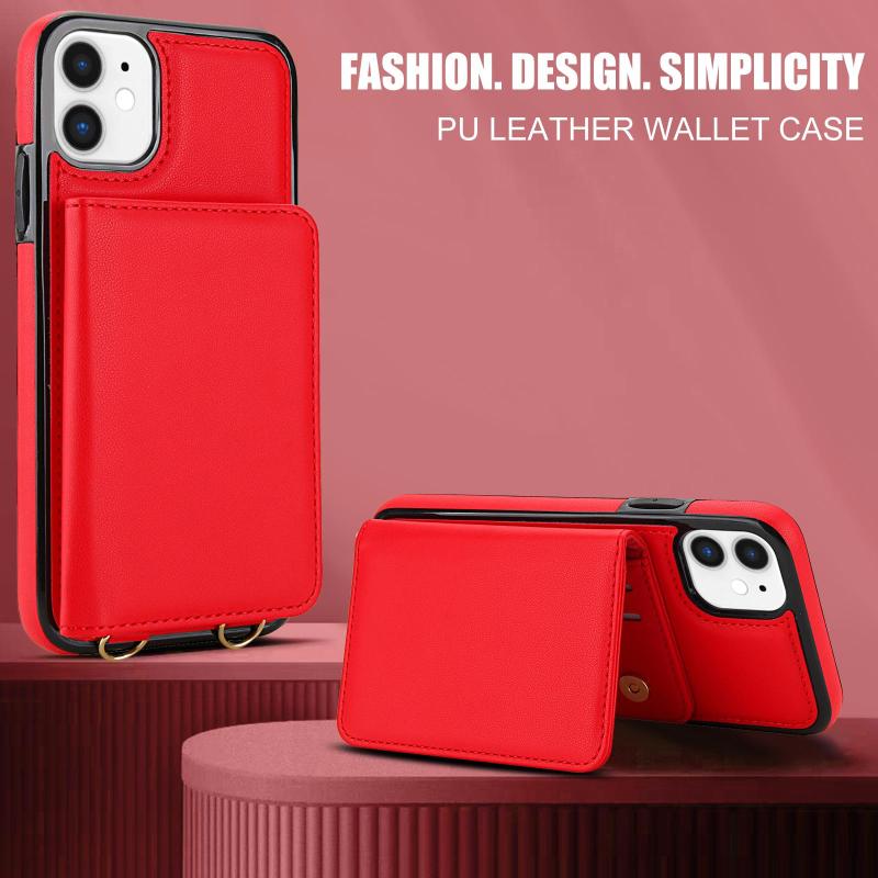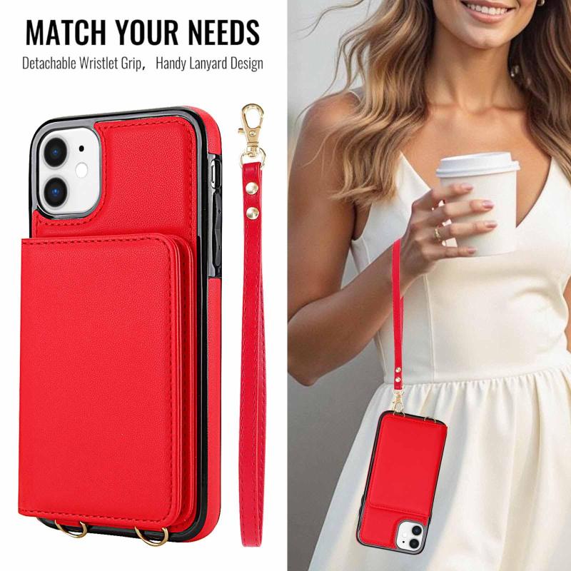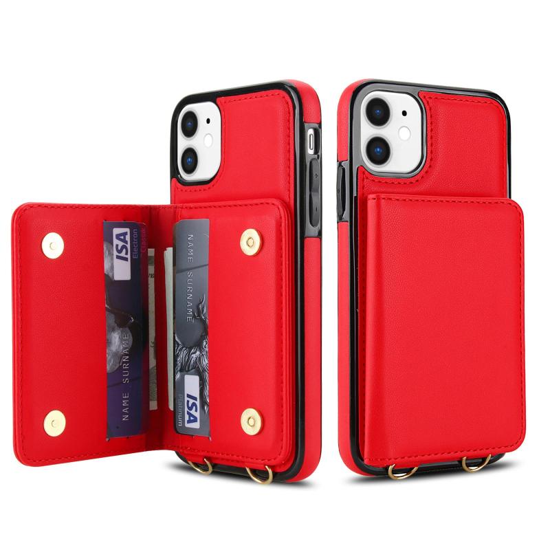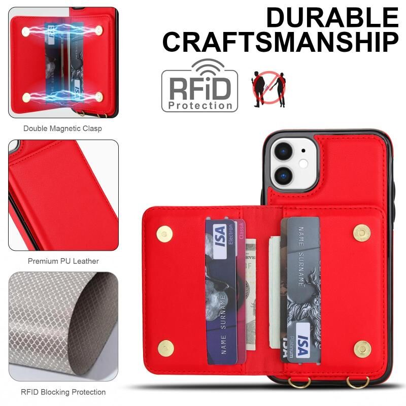 For iPhone 11 Crossbody Dual-buckle Wallet RFID Back Leather Phone Case(Red)