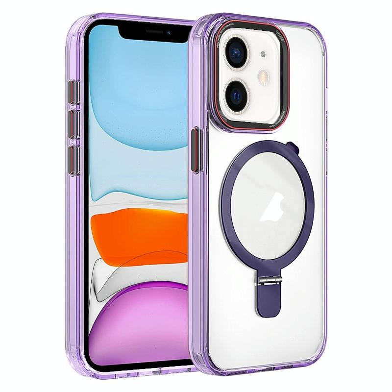 For iPhone 11 Crystal TPU Hybrid PC MagSafe Holder Phone Case(Transparent Purple)