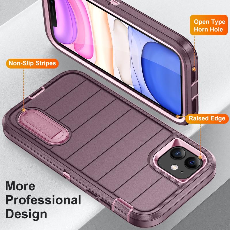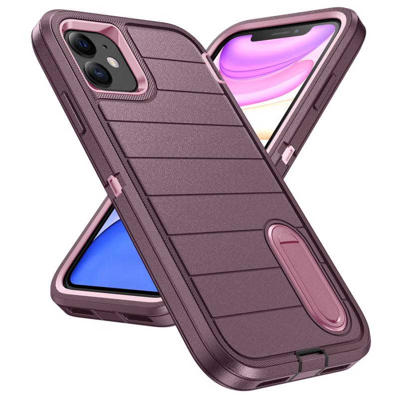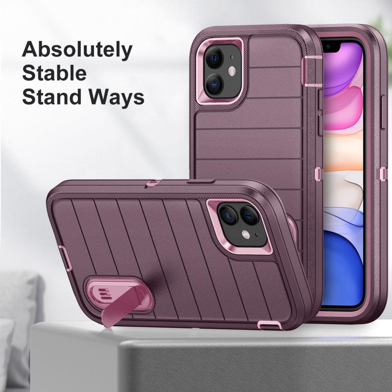 For iPhone 11 Defender Gen2 Rugged PC + Silicone Phone Case with Holder(Purple+Light Pink)